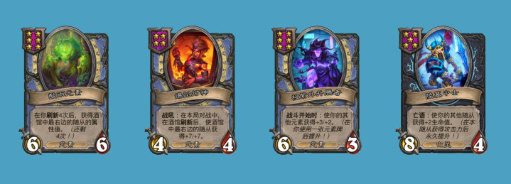 而元素这边,设计师预防性的削弱了酸雨元素,初始身材从4/4上调为6/6,但效果从刷新3次获取酒馆最右随从身材改为刷新4次,成长效率打折扣,不过作为补偿,爆焰灯神战吼从+6/+6上调为+7/+7了,并且极紫外升腾者效果也从+2/+2上调为+3/+2,感觉靠双头飞龙煮酒馆还是会很强,但上限没有以前那么高了,同时刚拿到酸雨回合的保血能力也没以前强了。最后一张削弱的卡牌是陵墓中士,亡语效果现在变成只会给你的“其他随从”生效了,这个削弱应该只会影响通过鹦鹉以及时空扭曲陆行鸟这种触发亡语时的情况。
