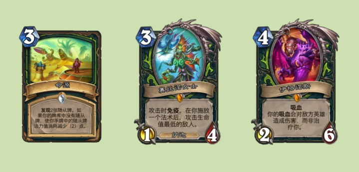 首先来看天梯构筑的平衡内容,这次虽然说表面上这次平衡都是加强,但也有一些看着像加强,实际效果却是削弱的,比如命源,从2费上调为3费,但变成发现两张随从牌,命源这张牌在狂野里会在一些OTK卡组里带着给赛丝诺女士和伊格诺斯这样的核心随从减费用,而发现的随从牌忽略不计,这样“加强”后命源反而没以前好用了。其实这反映俩问题,一是设计师平衡的时候确实不咋考虑狂野的卡组,另一个就是设计师就想让你命源带在纯法术瞎卡组里找随从撑场面用的,甚至可能巴不得没有混随从的法术瞎,就像贫瘠之地的宇宙牌一样,最初神雷诺是可以加入到伪宇宙卡组的,但这样的玩法是设计师不想看到的,所以干脆从机制上把这种卡组ban掉了,属于是设计师教玩家玩游戏了。实际上即使抛开混随从的玩法,加一费对于纯法术瞎卡组可能也会在节奏上产生不小的影响。